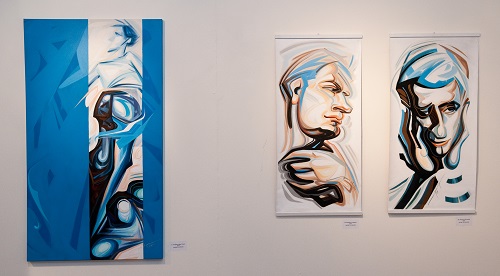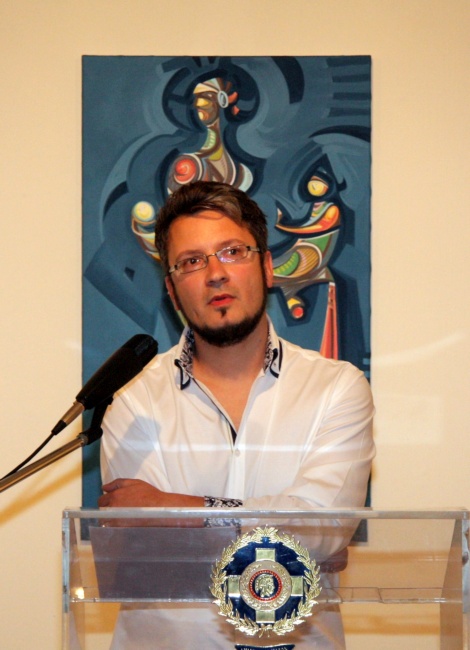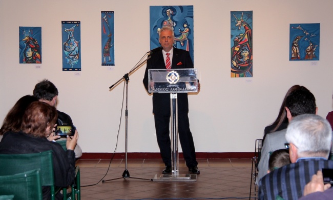 The artist states that ‘’ Contemporary primitivism work constitute my effort to express my opposition to what modern society has offered and presented in the recent years. My 50 paintings , mainly medium sized canvasses , or some even bigger , were produced in the years 2010-2015 . Influenced by the Balkan folklore, mainly the Romanian , the folk art of Middle East and North Africa , I combine schematic elements with decorative coloring in my distinctive penmanship. A lot of automizations and ways of expressions easily identified in my paintings , stem from the Byzantine religious painting , which I studied for years in Greece ‘’.