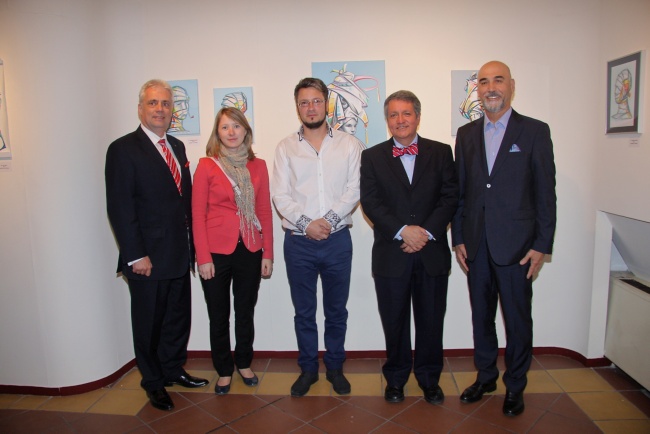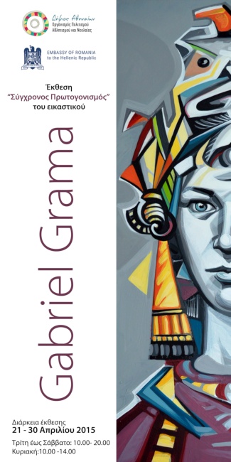 Gabriel Grama, of Romanian origin and studies in sculture, remembers the traditions of his country and is influenced by her pagan worships and dances with traditional masks, as well as by the customs of East Europe, the Mediterranean, Egypt and North Africa. Through his paintings he talks about the universal symbols of life and fertility , as these exist in the contemporary world.